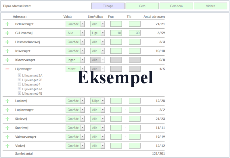 I kan hele tiden følge status over hvor antal valgte adresser. |